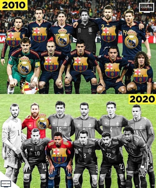 经历了1958世界杯之后,以科帕和方丹为代表的球星潮落幕,法国进入了一个长达20年的低谷期,先后三次缺席世界杯(1962、1970和1974)。英格兰在本土夺冠之后,连续两次缺席世界杯(1974和1978),俱乐部在欧战中的强势与国家队的低迷形成剧烈反差,这样的情况在西班牙身上也存在。